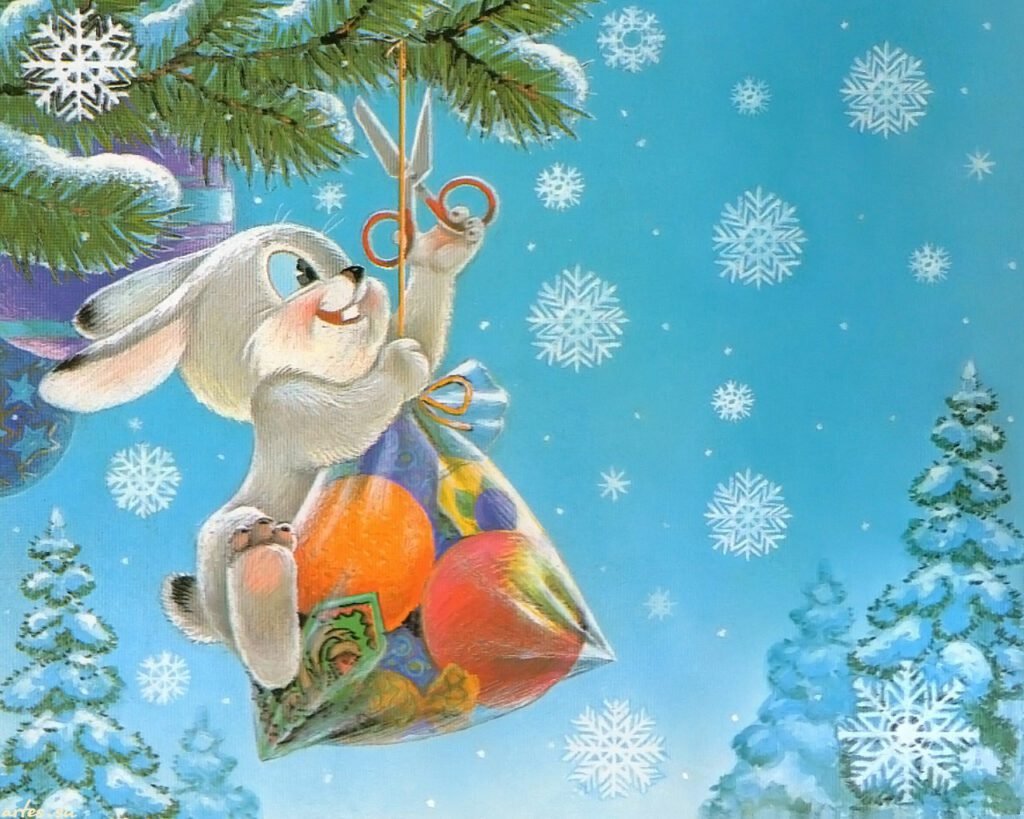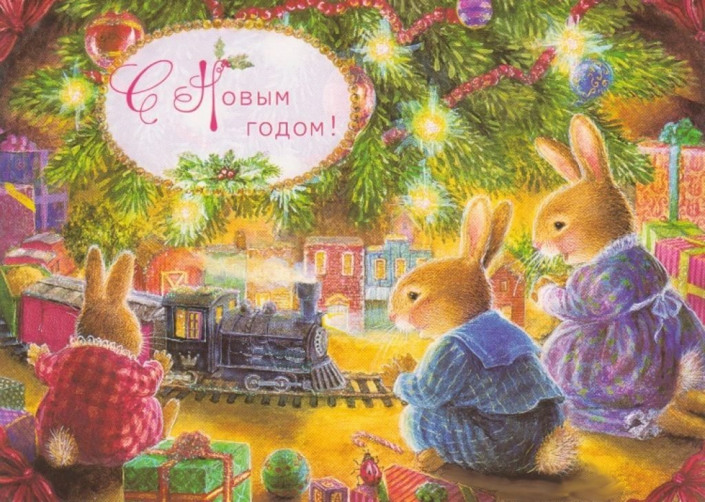 Открытки новогодние с кроликом с пожеланиями (46 фото)