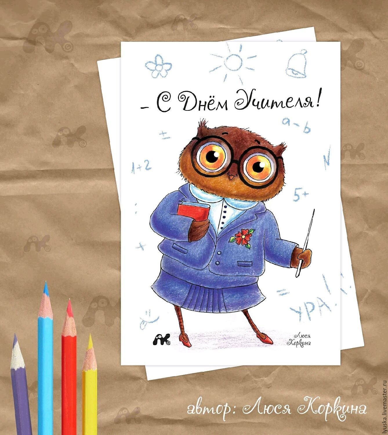 ![Сова учитель открытка]()