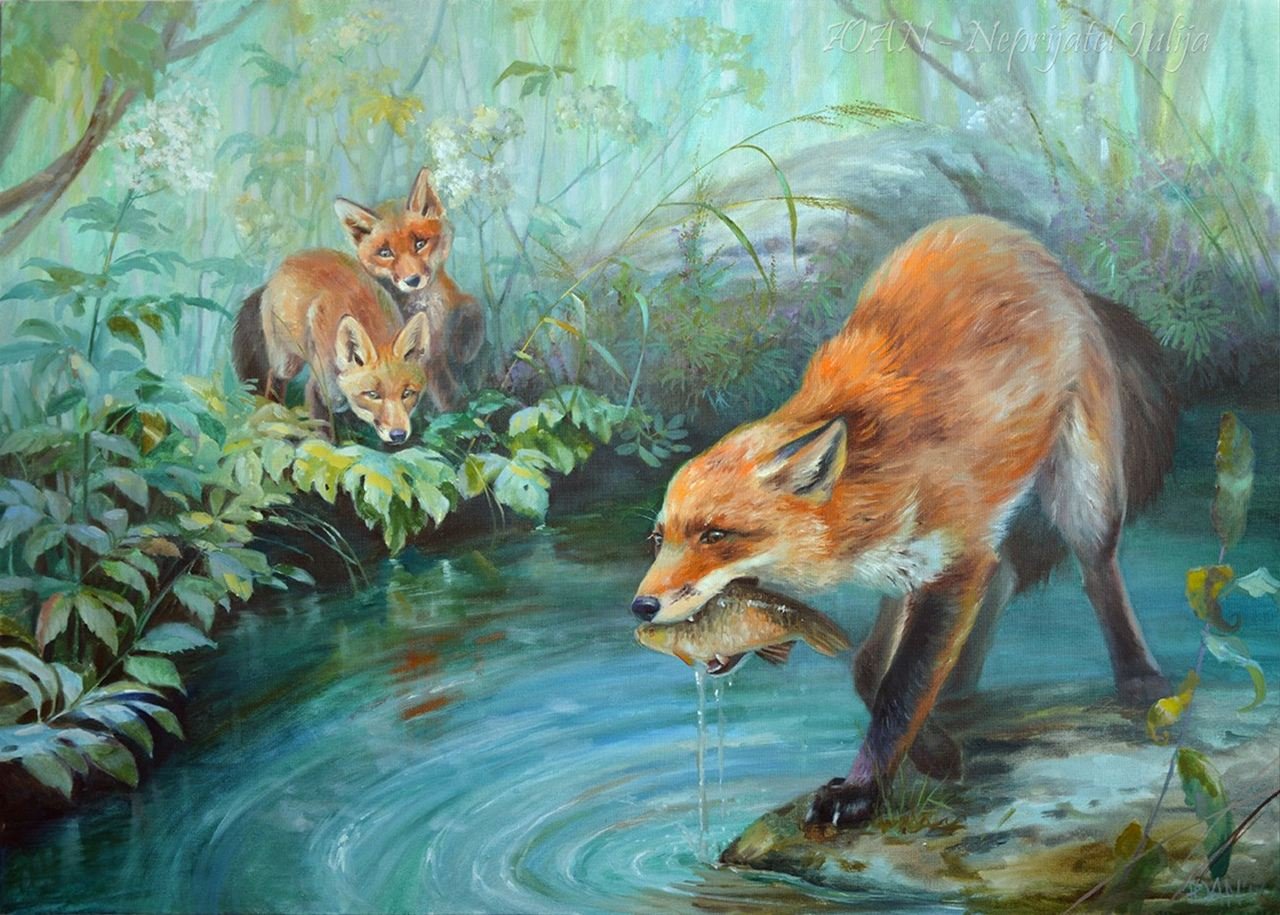 ![Лиса с лисятами Ушакова]()