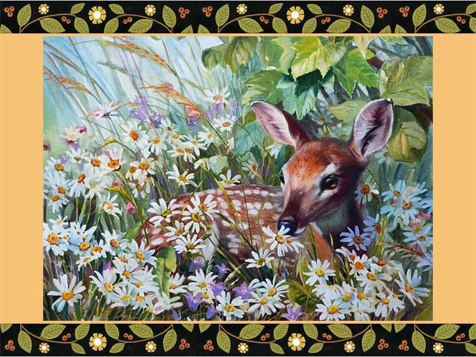 Картина по номерам Олененок в цветах