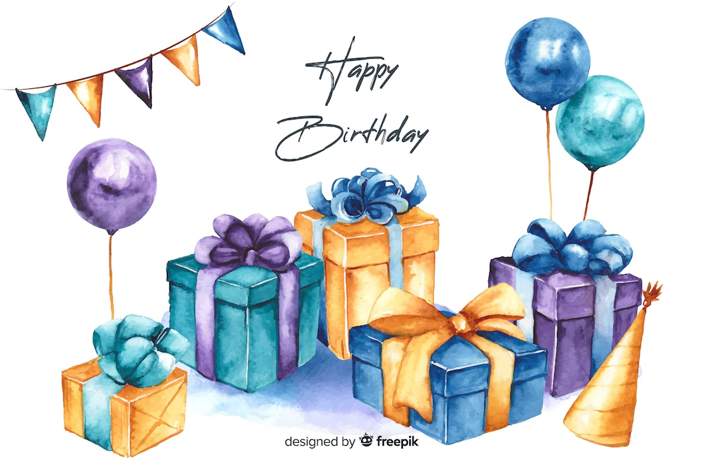 С днём рождения Акварельная открытка