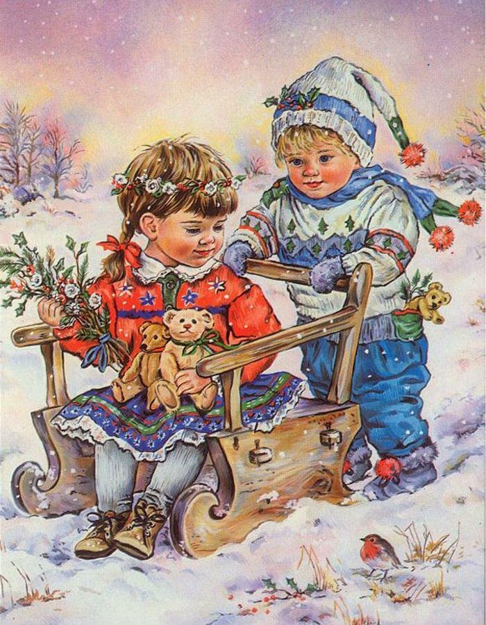 Ретро открытки с детьми зимой