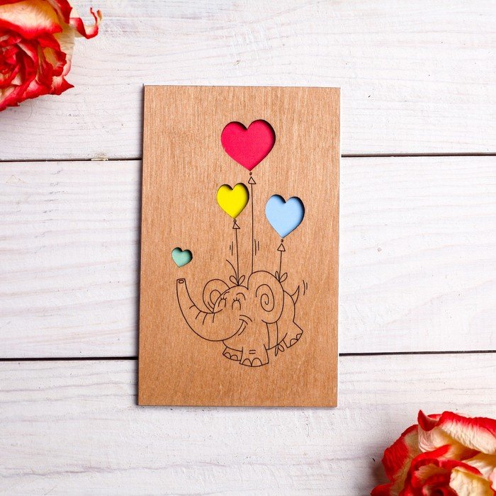 ![Открытка с деревянными элементами]()