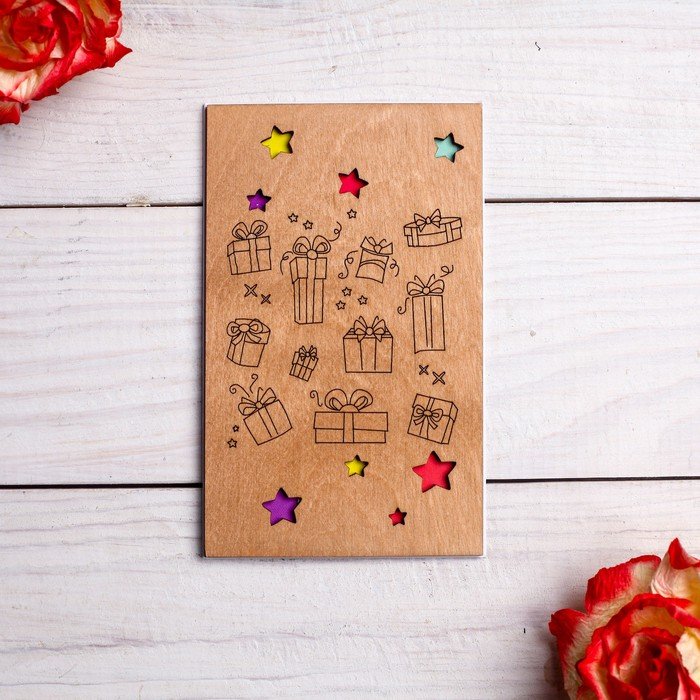 ![Деревянная открытка "подарки"]()