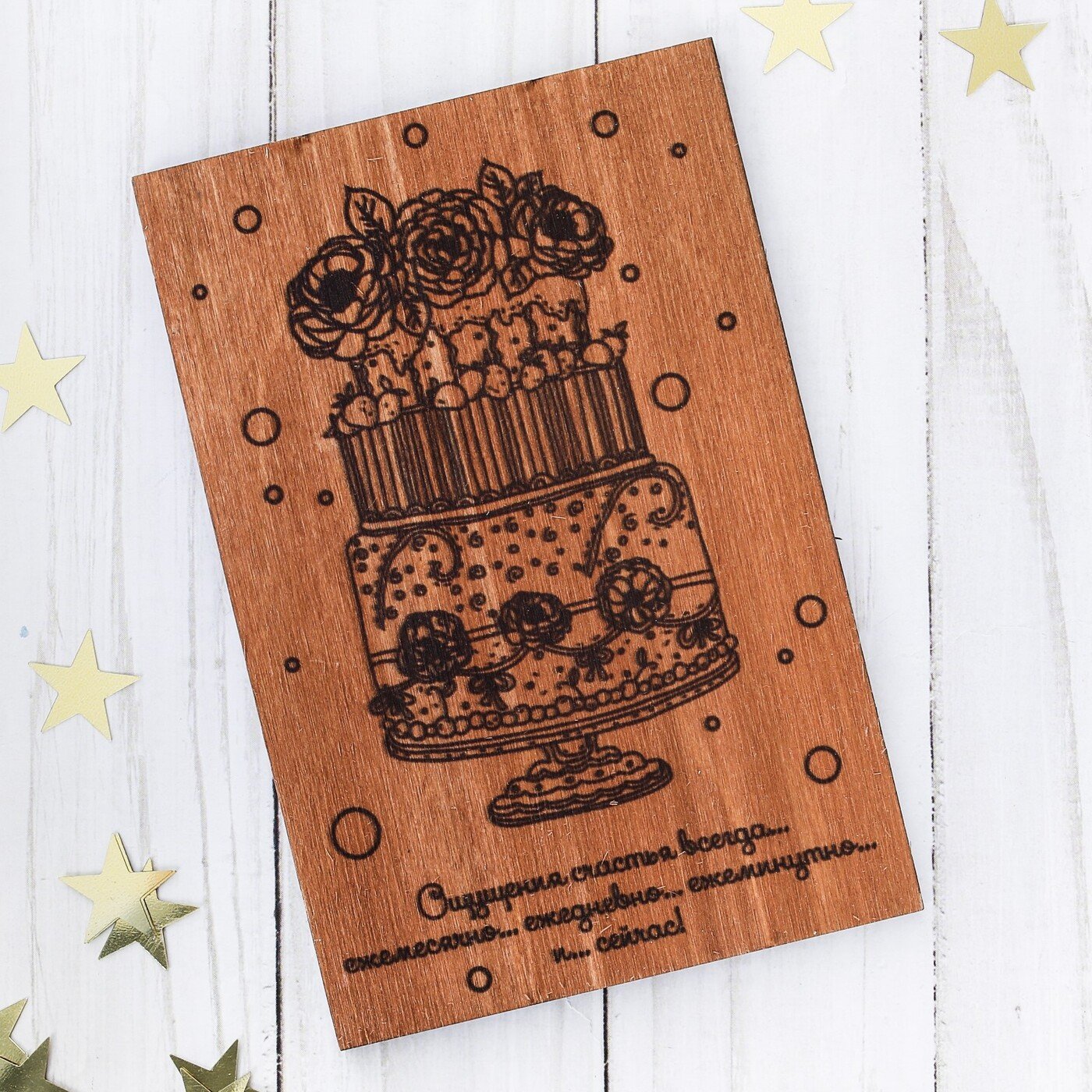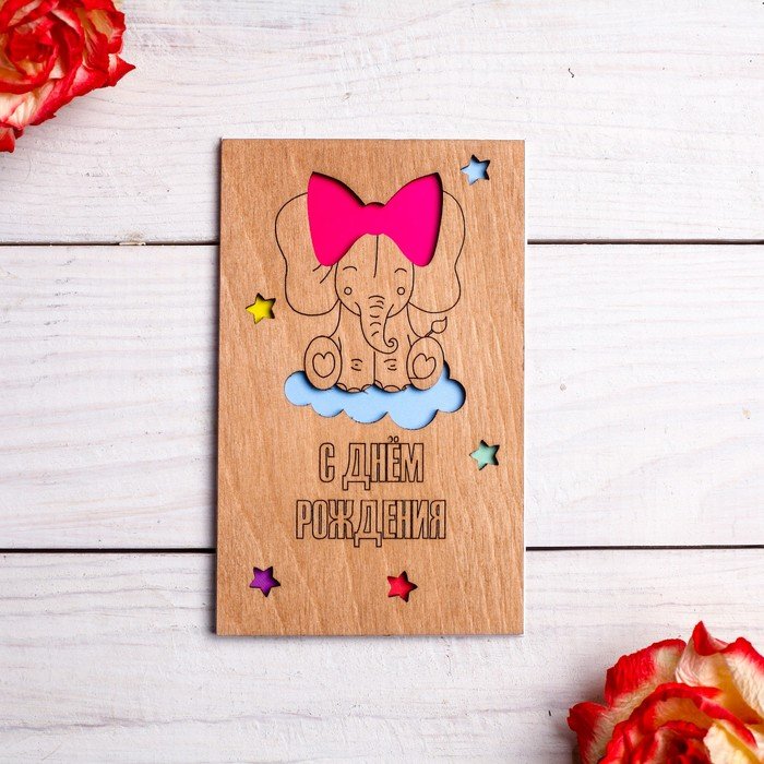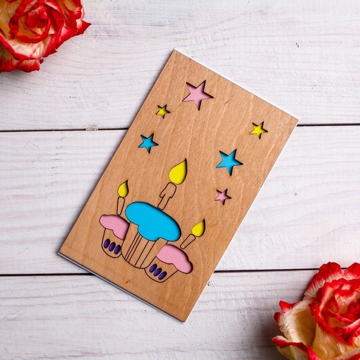 Деревянная открытка с днем рождения
