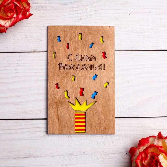 ![Деревянная открытка с днем рождения]()