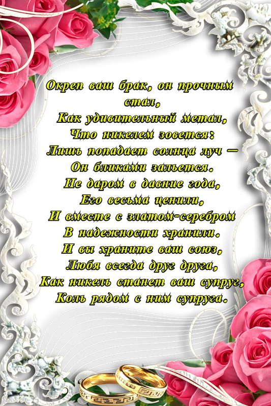 Никелевая свадьба поздравления