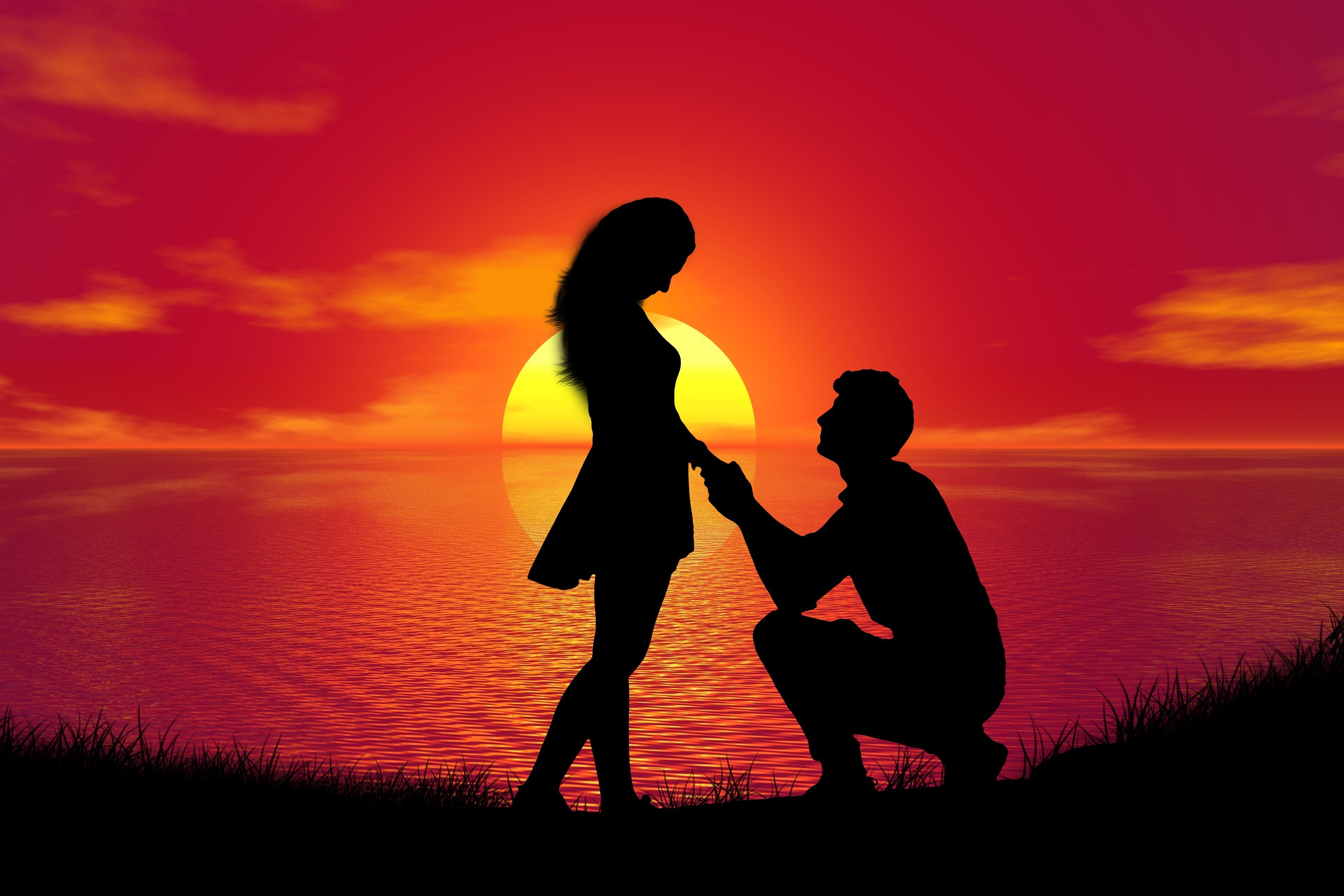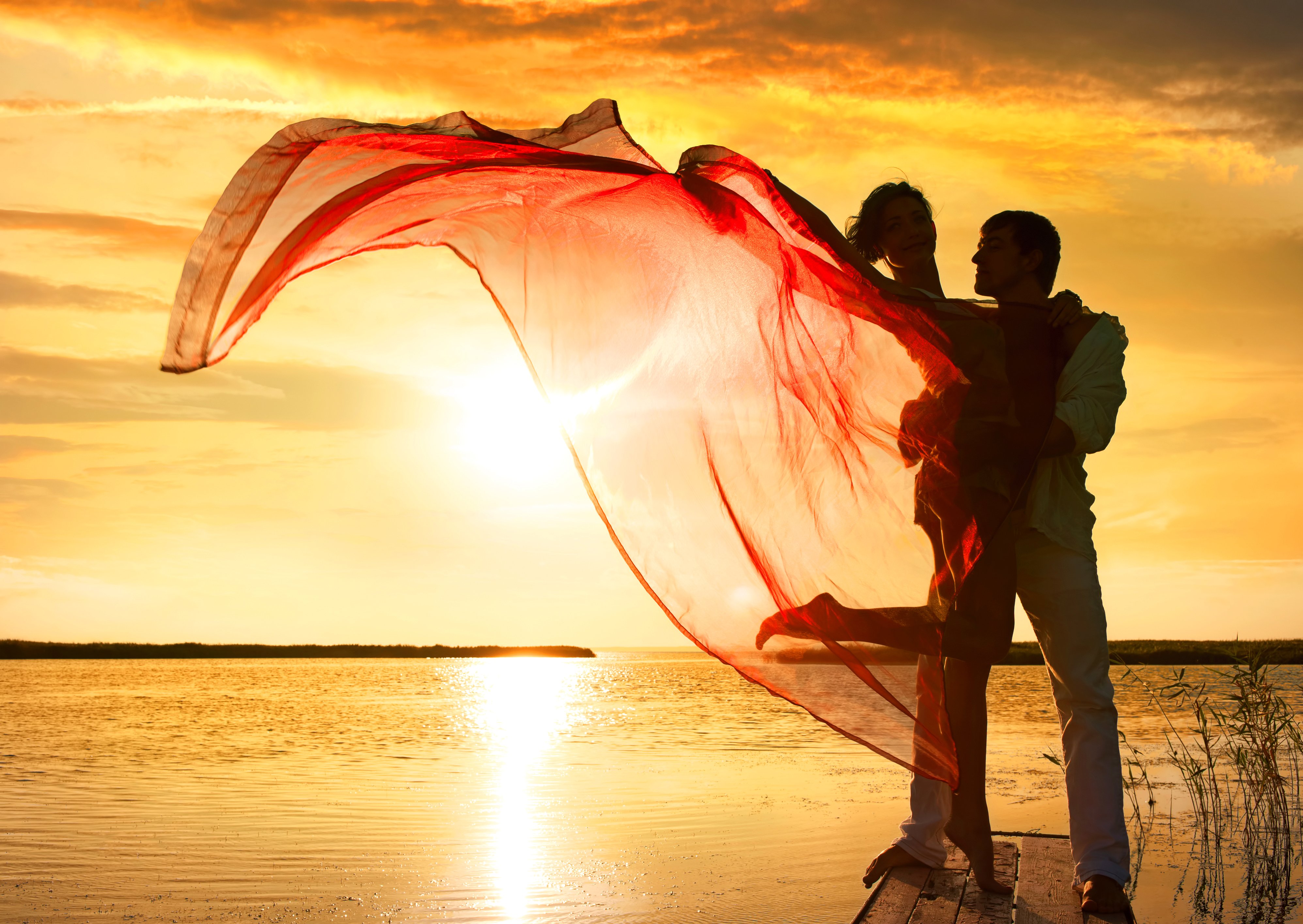 Силуэты влюбленных на закате