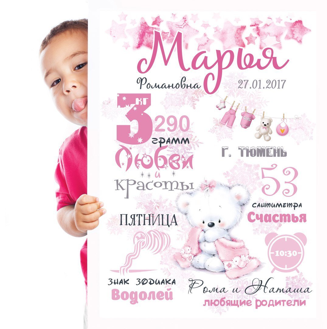 Плакат в роддом с рождением девочки