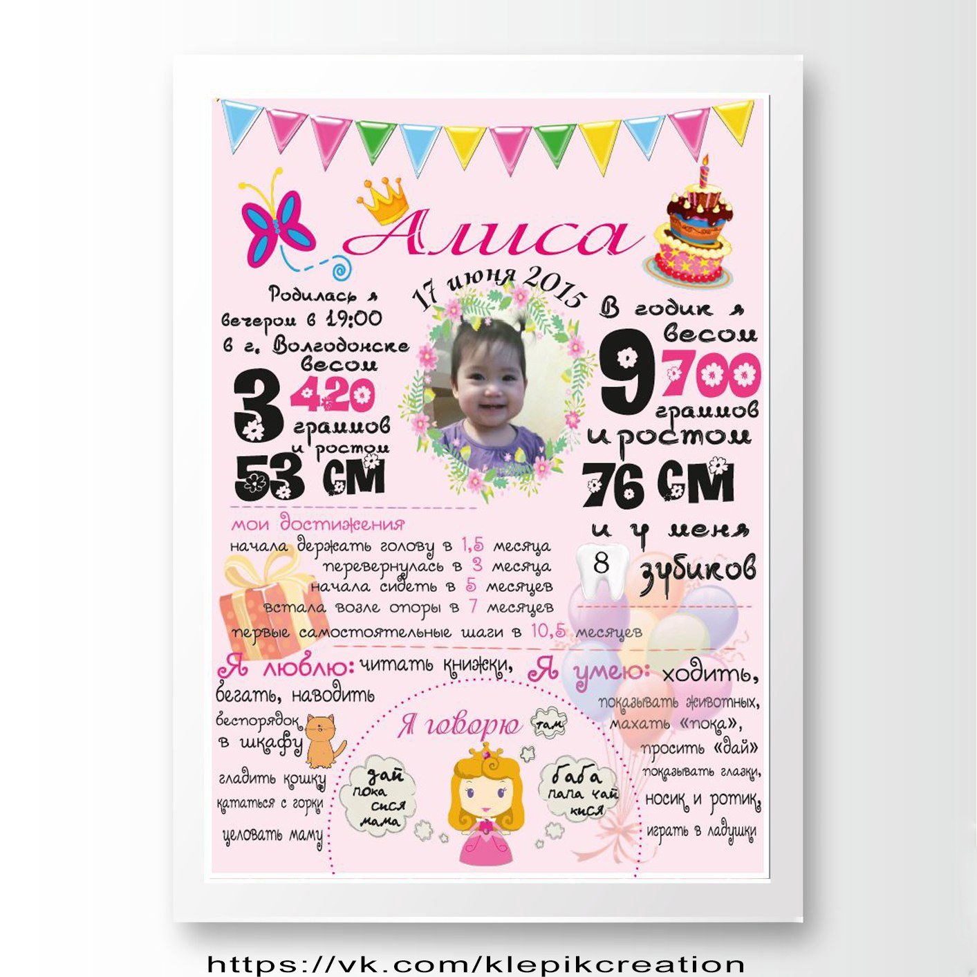 Постер на годик девочке
