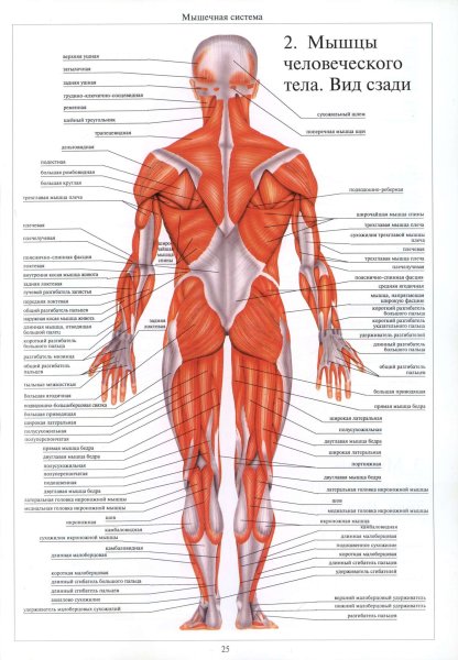 ![Поверхностные скелетные мышцы вид спереди и сзади]()