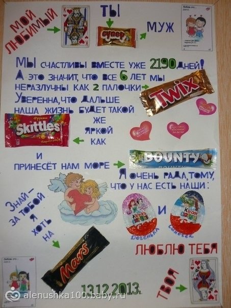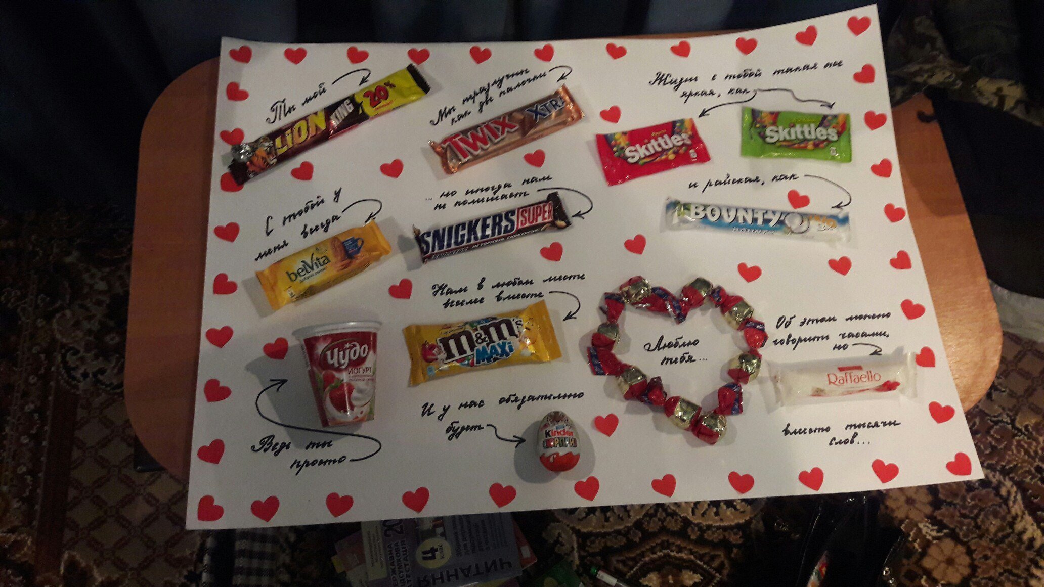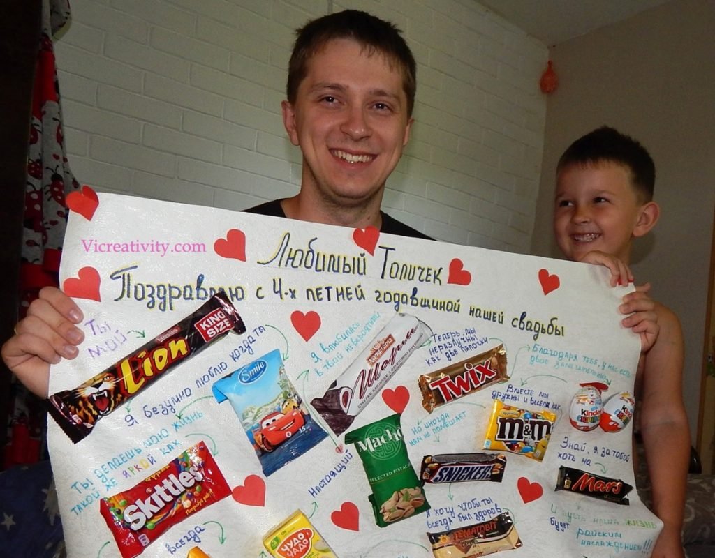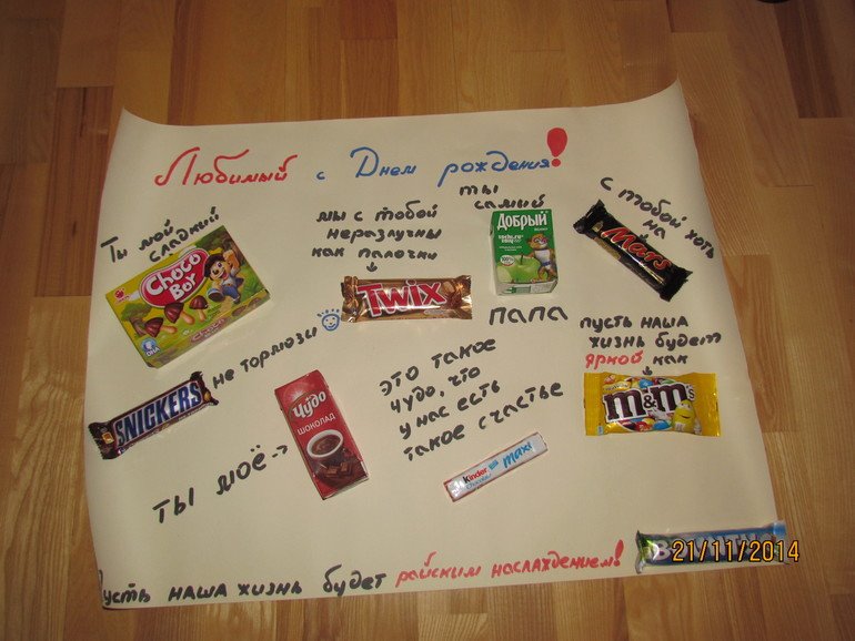 ![Плакат с днём рождения мужу и папе шоколадками]()