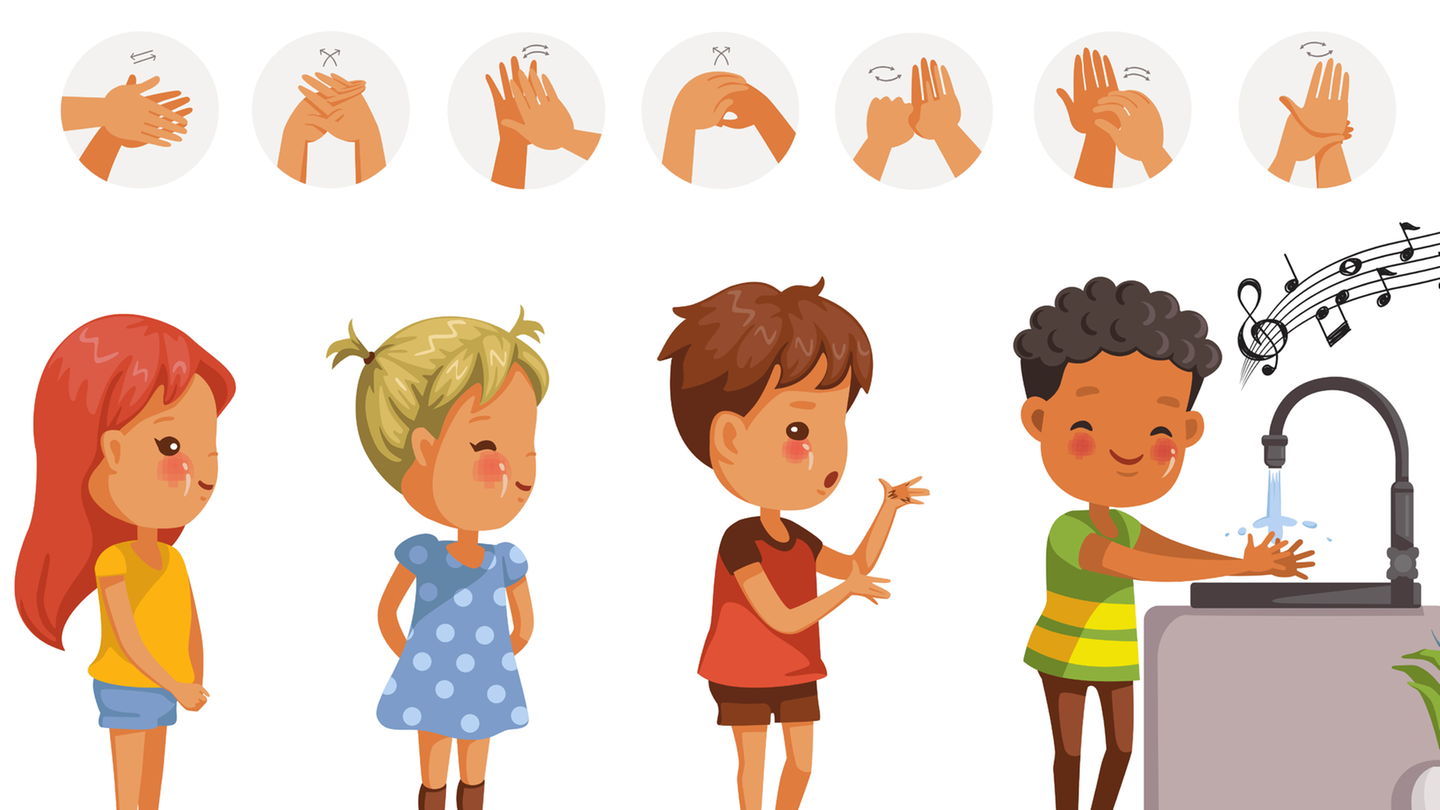 ![Ребенок моет руки вектор]()