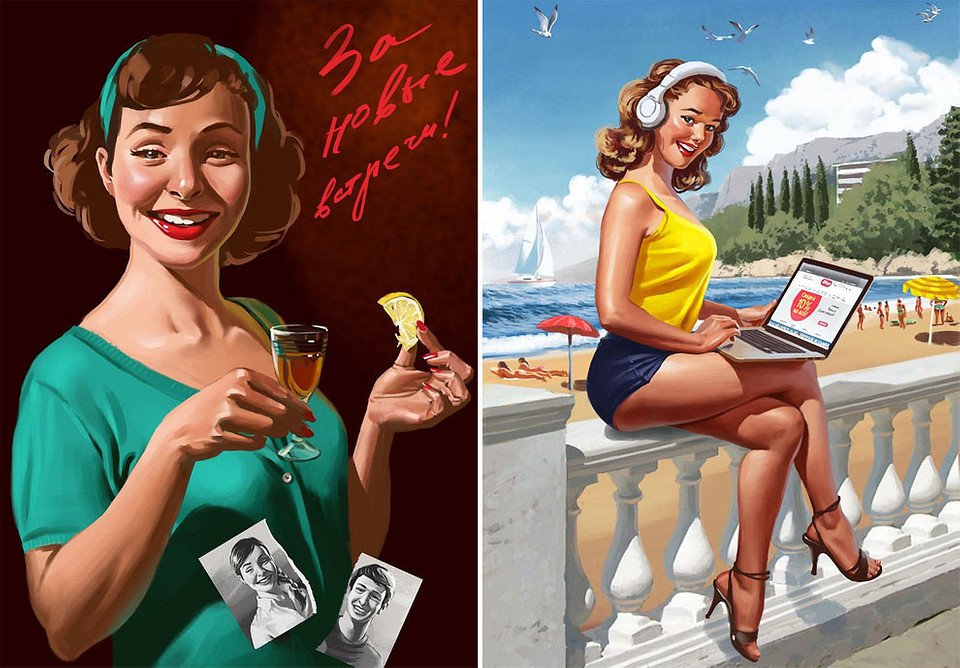 Советские плакаты в стиле пин ап художник Валерий Барыкин