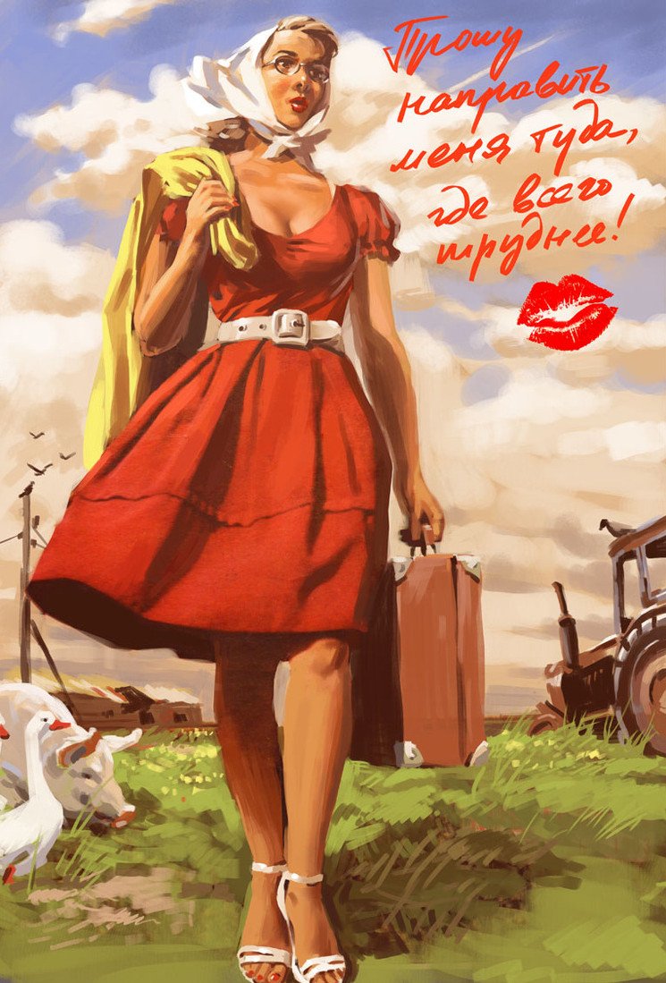 ![Советские плакаты в стиле пин ап художник Валерий Барыкин]()