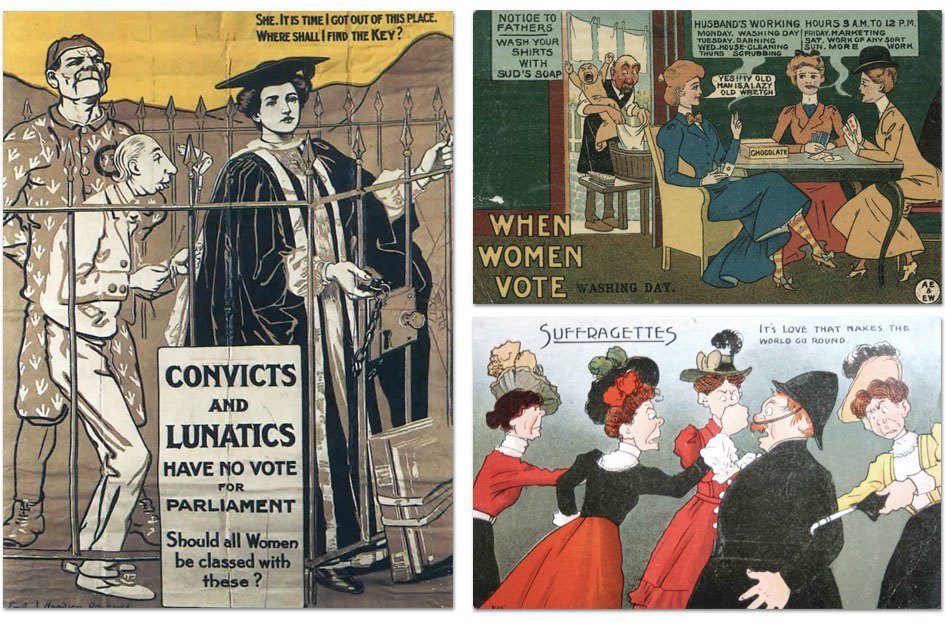 ![Плакаты против суфражисток]()