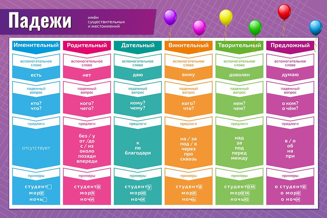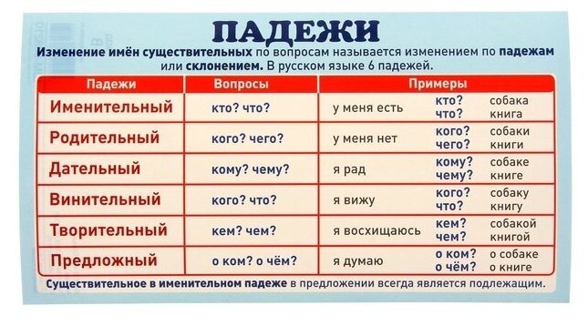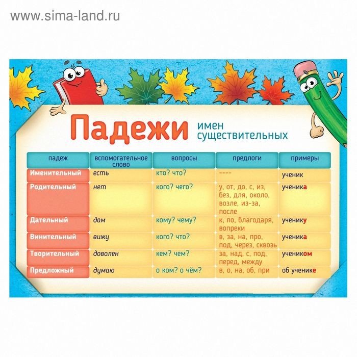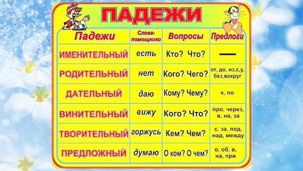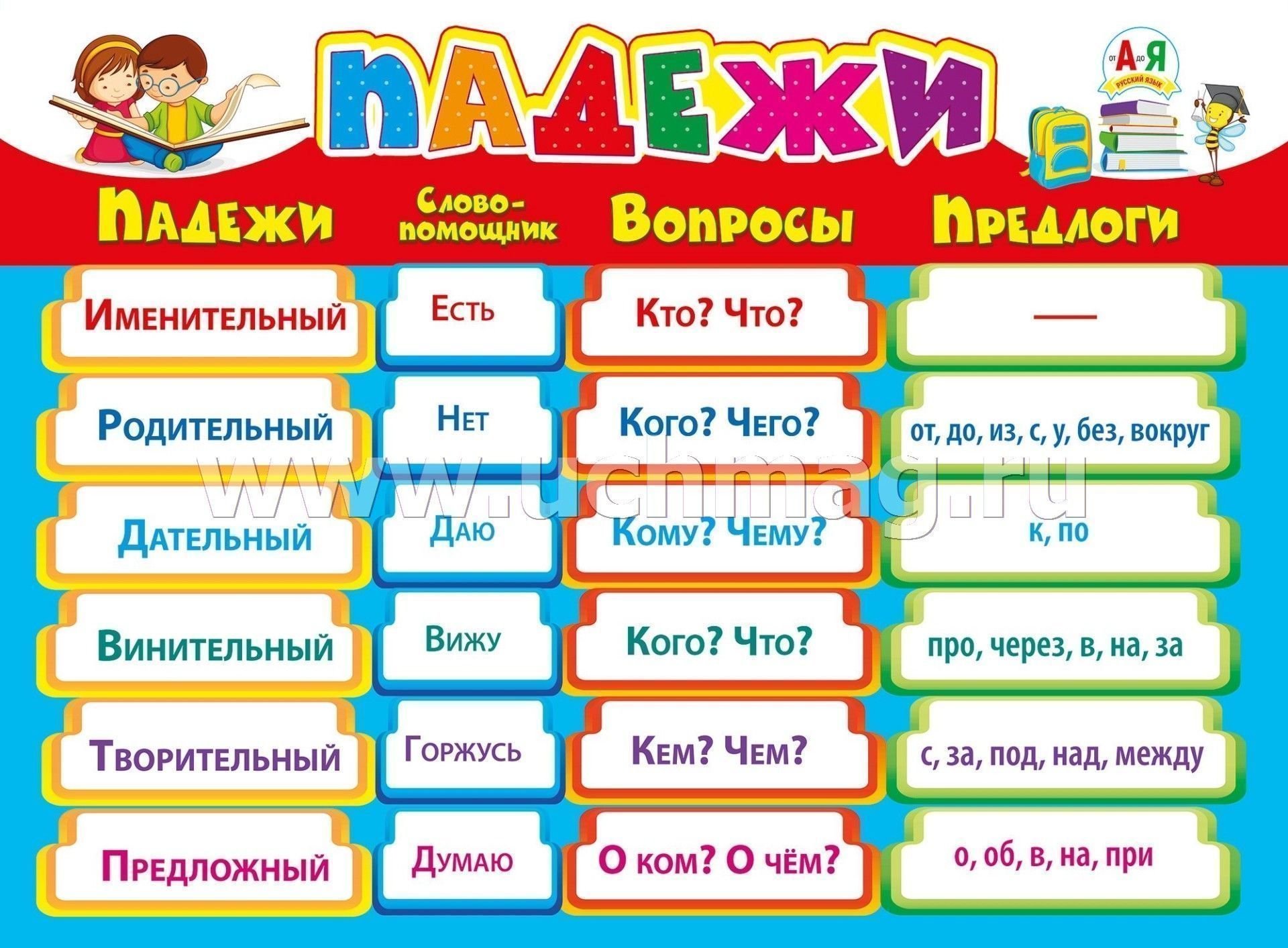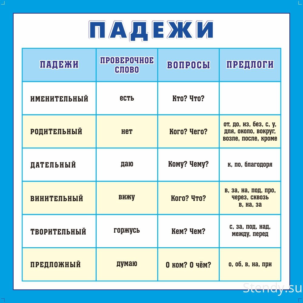 ![Падежи русского языка таблица с вопросами 3 класс]()