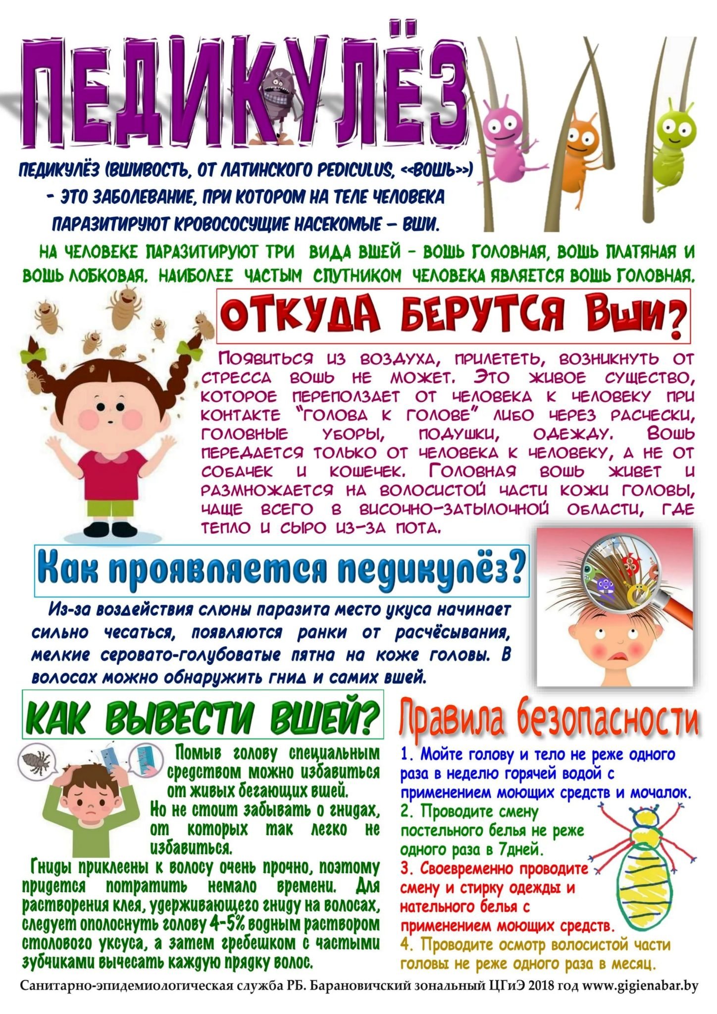 Педикулез - это распространенное заболевание, вызванное насекомыми-паразитами, известными как вшей. Они обитают на коже головы и питаются кровью человека, вызывая зуд, раздражение и дискомфорт. Плакат о педикулезе является важным информационным материалом, который помогает повысить осведомленность людей о симптомах, способах передачи и методах лечения этого заболевания. На плакате можно найти полезные рекомендации по профилактике, а также изображения вшей для более легкого определения присутствия этих паразитов. Он предоставляет важные данные и руководства для борьбы с этим неприятным состоянием и способствует поддержанию здоровья и благополучия всех, кто его использует.