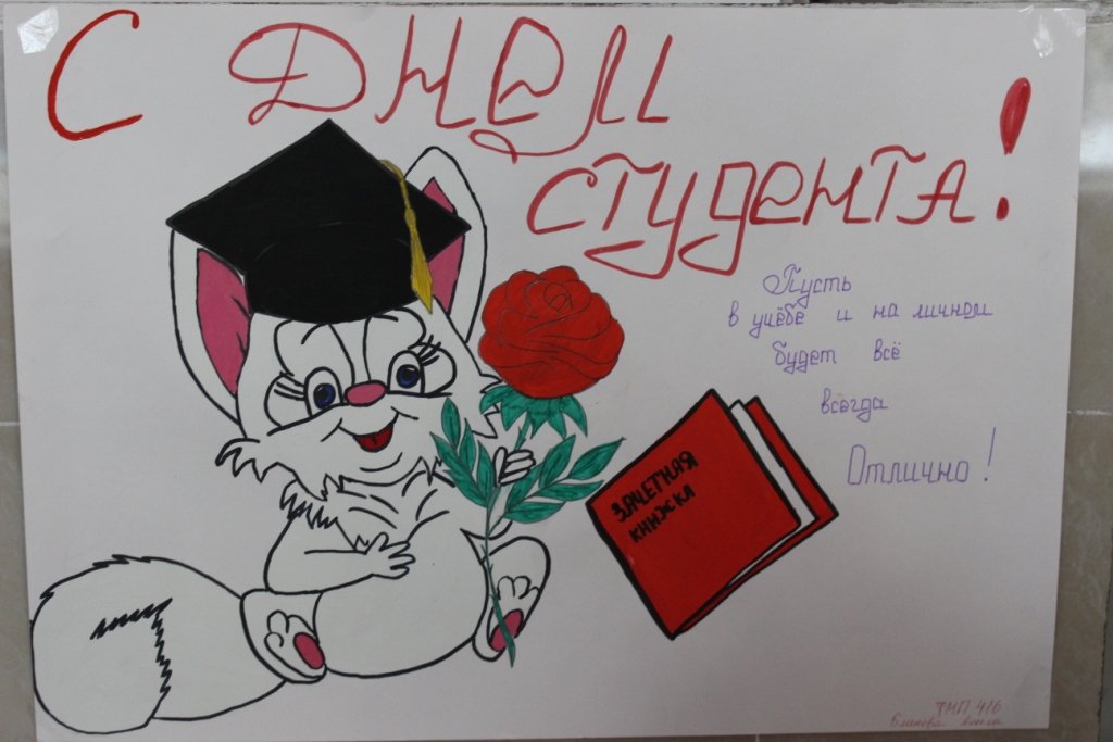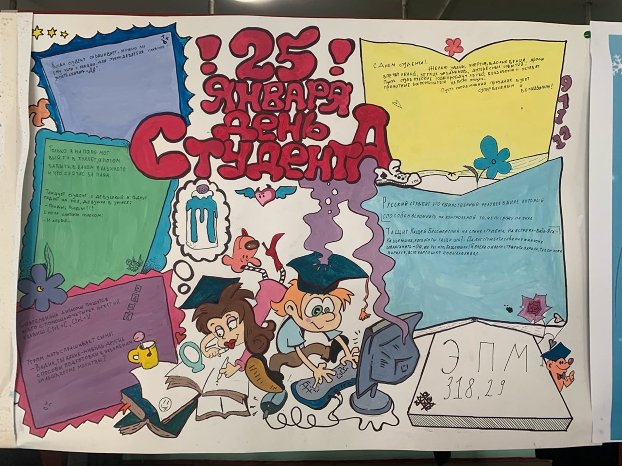 Плакат "День студента" - яркое и настроение поднимающее изображение, созданное специально для празднования этого особого времени в жизни молодежи. На плакате можно увидеть яркие цвета, которые символизируют энергию и радость, а также изображения школьных предметов, книг, музыкальных инструментов и других атрибутов студенческой жизни. Этот плакат станет отличным украшением школы, колледжа или университета, напоминая каждому студенту о значимости и радости учебы и общения с друзьями. День студента - это особый день, который заслуживает особого празднования, и этот плакат поможет создать атмосферу веселья и взаимопонимания среди всех студентов.
