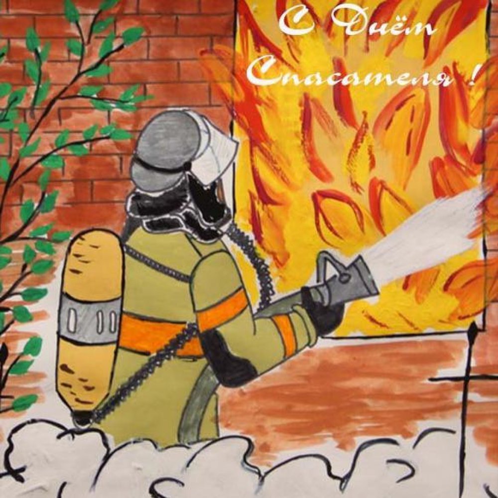 ![Детский рисунок ко Дню спасателя]()