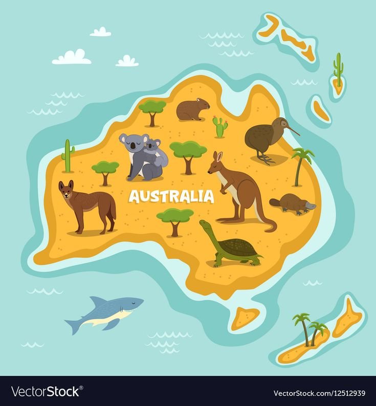 ![Карта Австралии с животными для детей]()