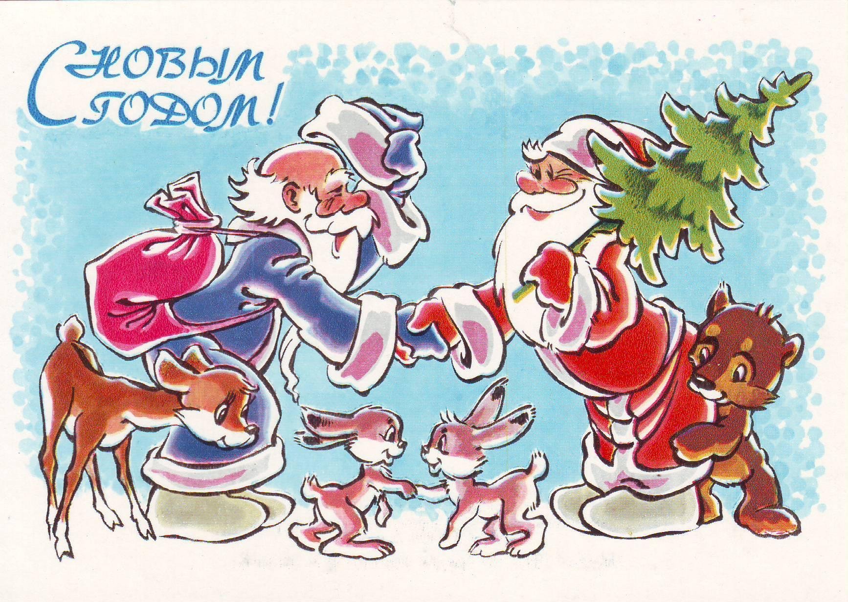 ![Советские новогодние открытки]()