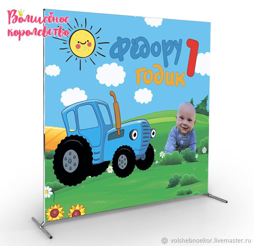 Фотозона синий трактор