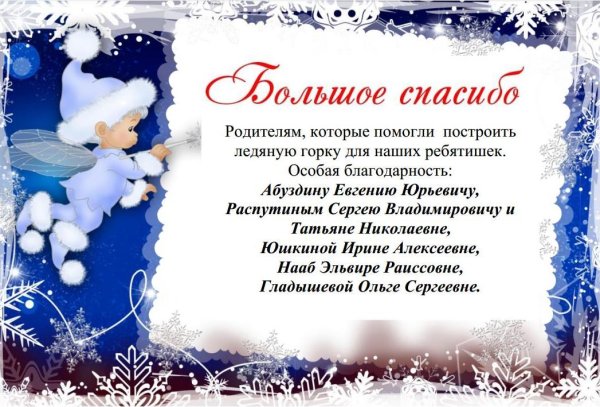 ![Благодарность родителям в детском саду за помощь на участке зимой]()