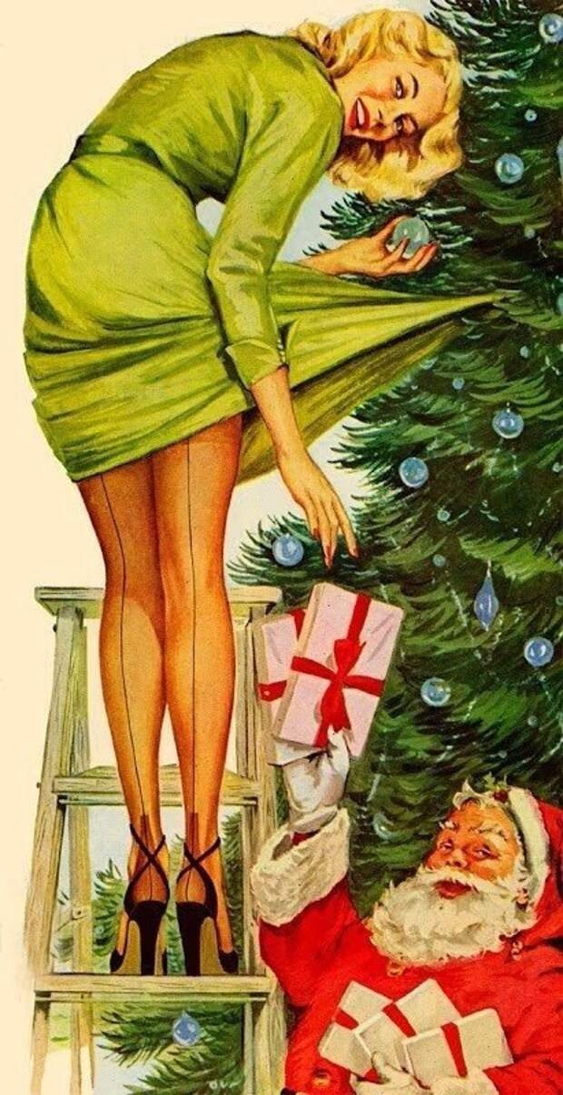 ![Новогодние открытки в стиле пин ап]()
