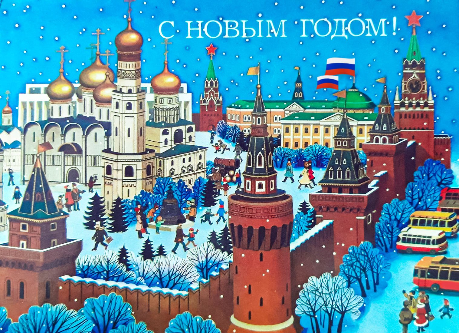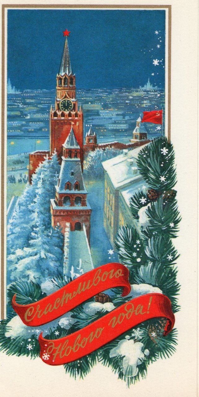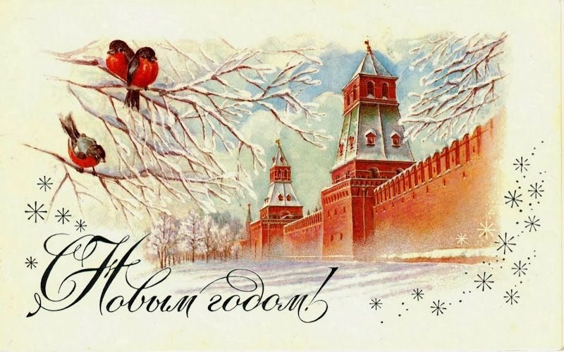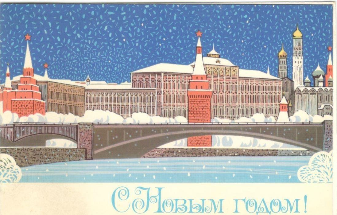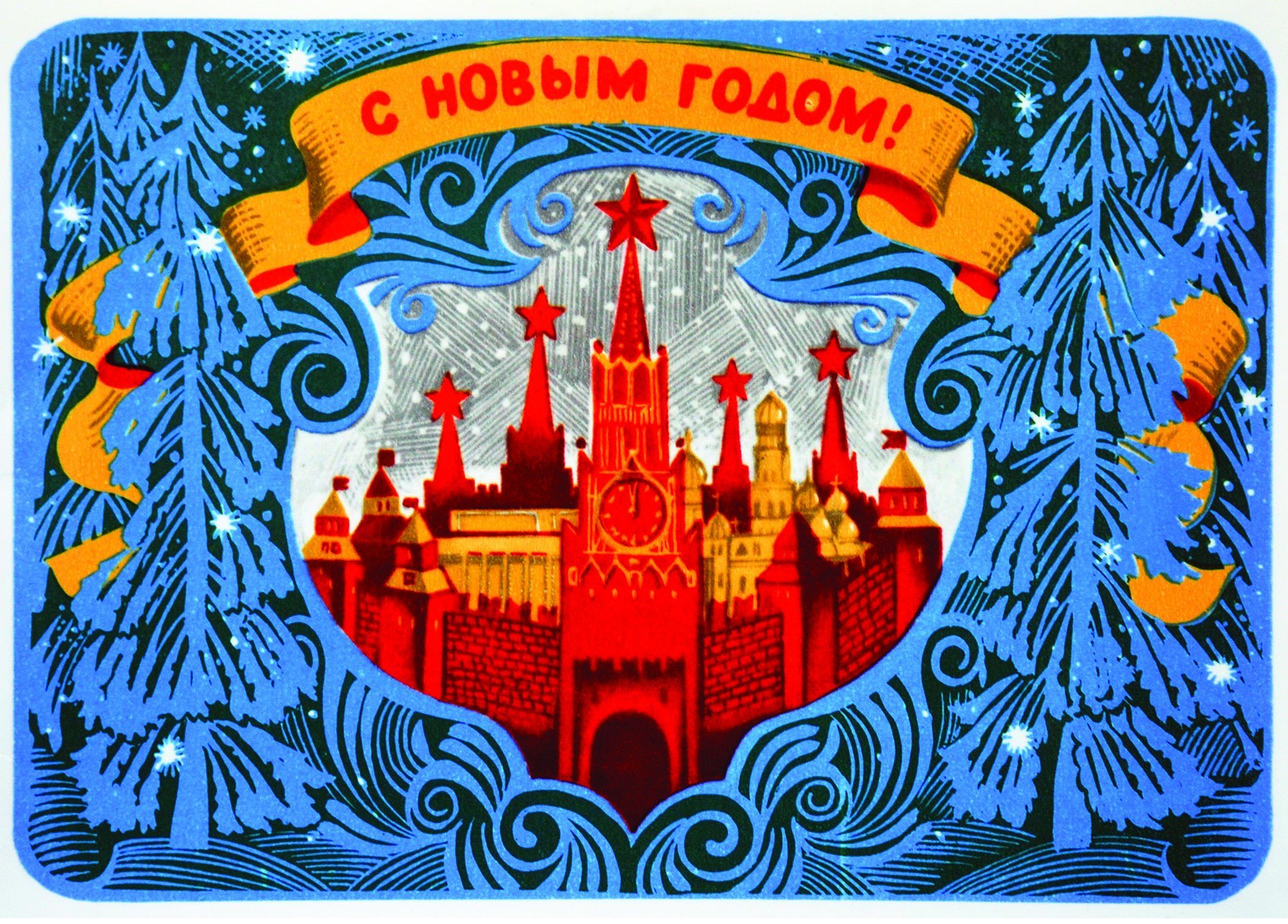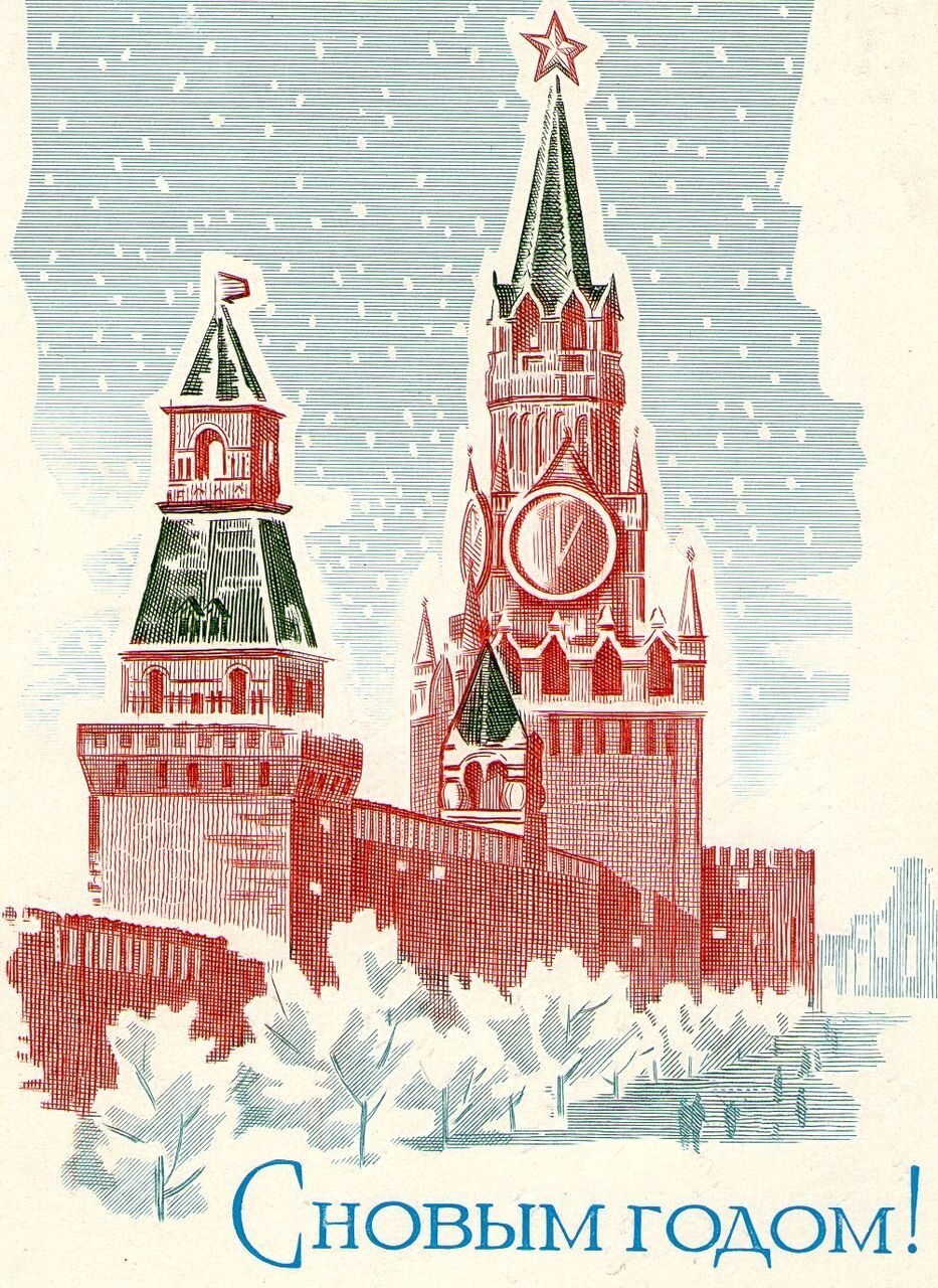 ![Новогодние куранты на Спасской башне Московского Кремля СССР]()