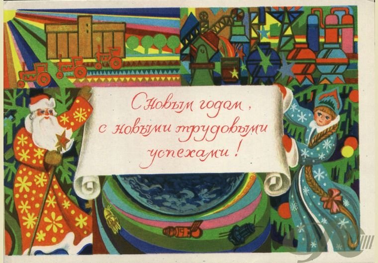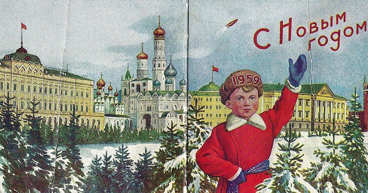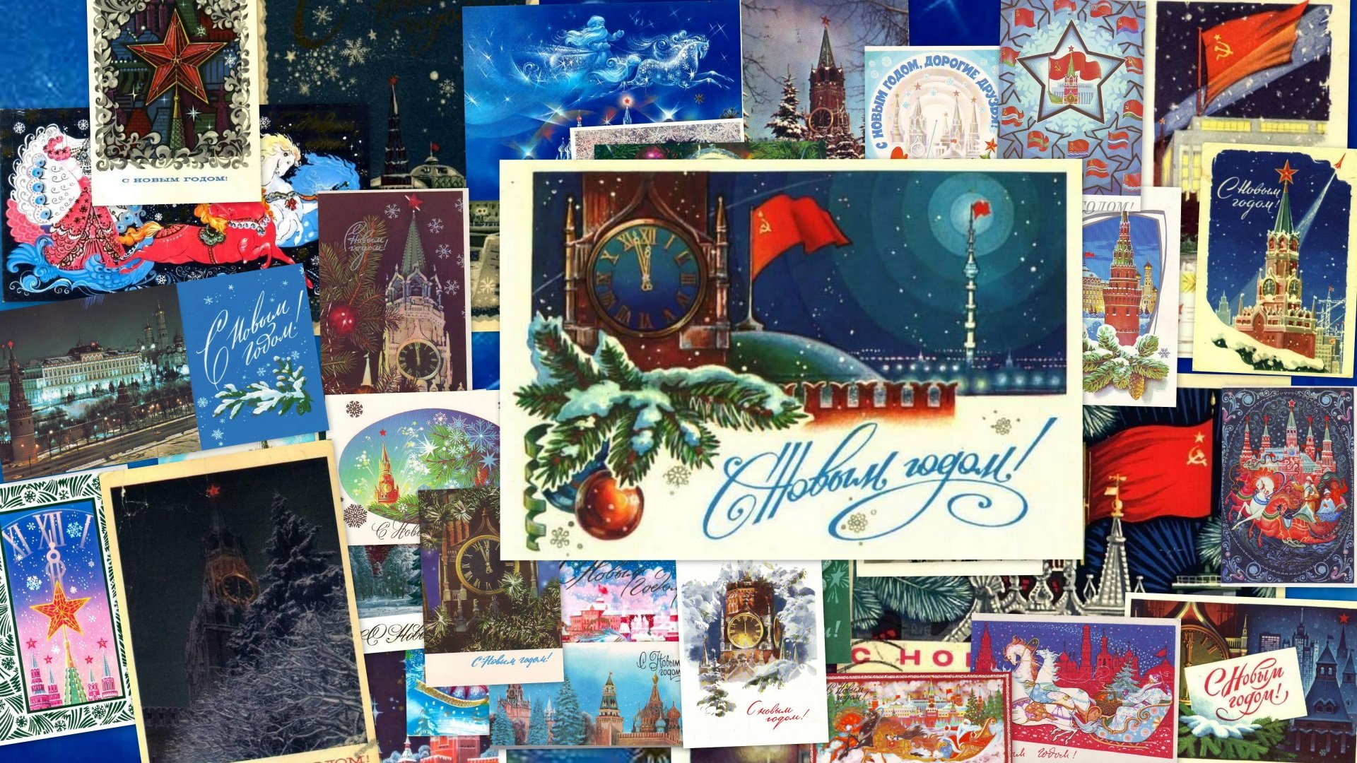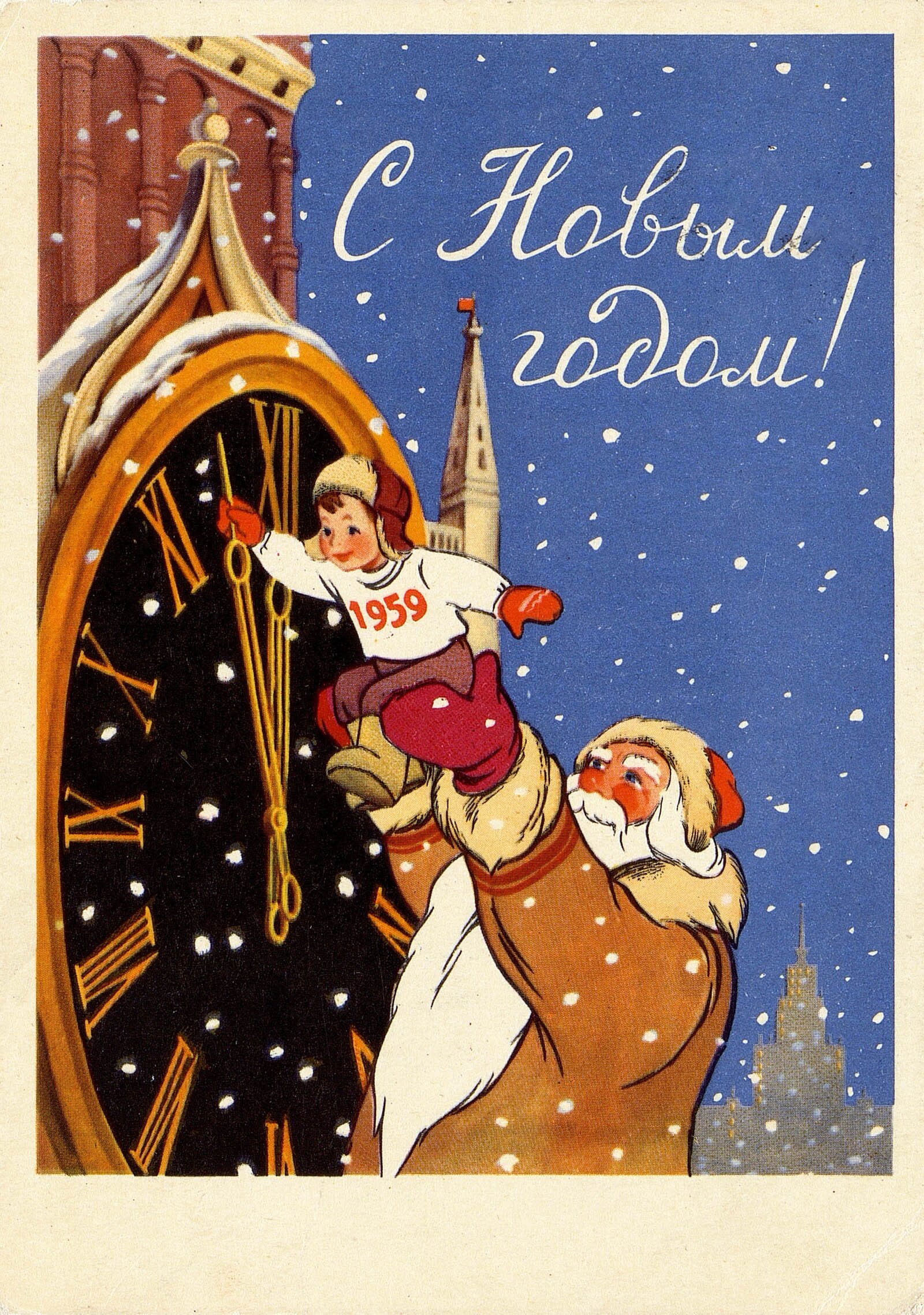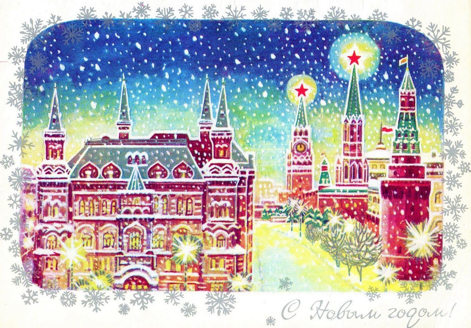 ![Новогодние куранты на Спасской башне Московского Кремля СССР]()