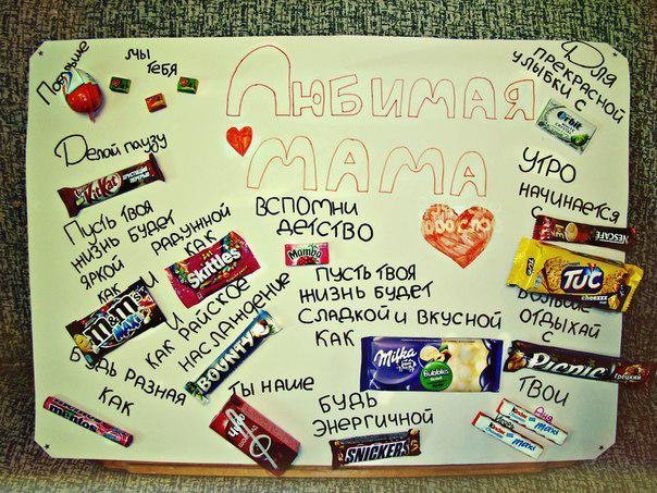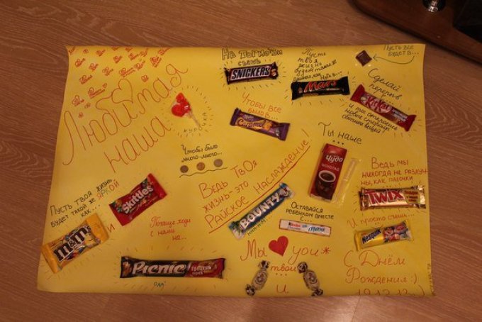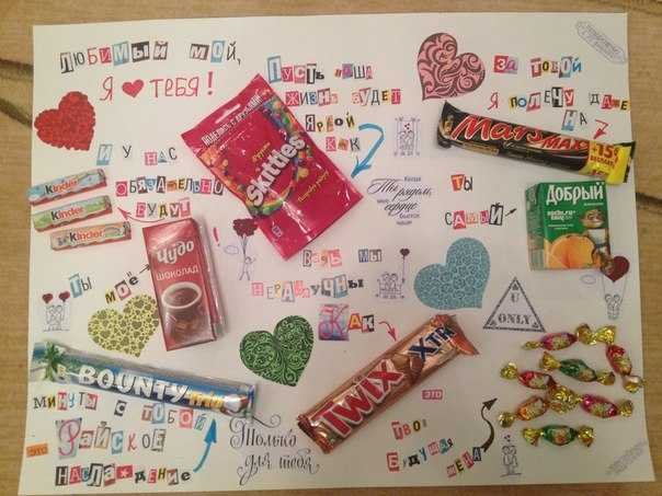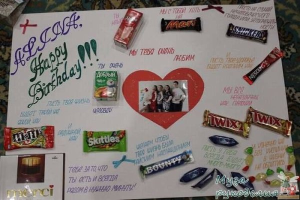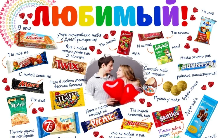 ![Плакат с днём рождения мужу и папе шоколадками]()
