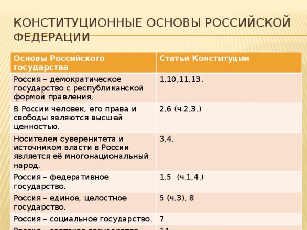 ![Принципы базовые начала конституционного строя РФ таблица]()