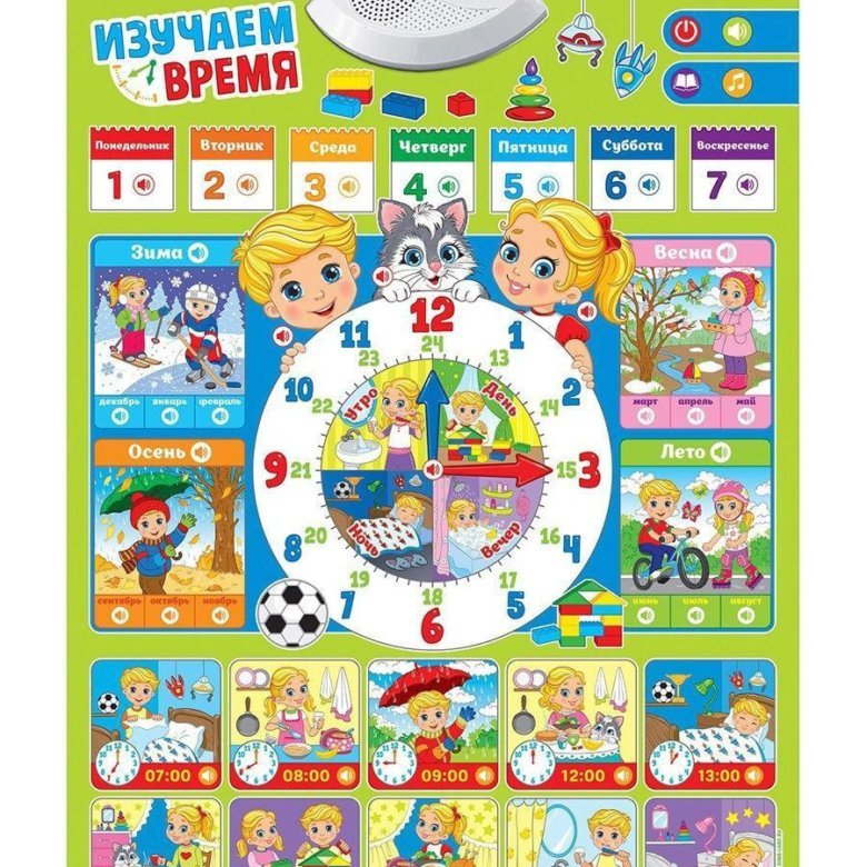 ![Обучающий плакат изучаем время]()