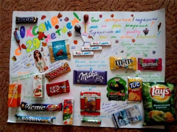 ![Сладкий подарок своими руками на ватмане]()