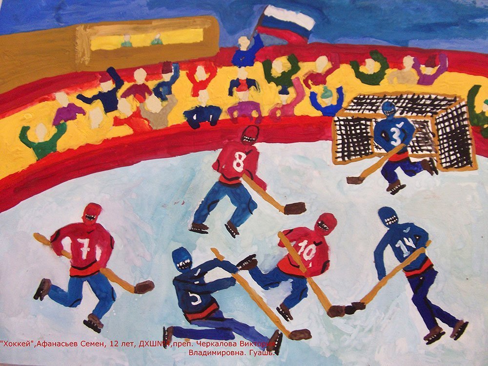 ![Детский рисунок на тему хоккей]()