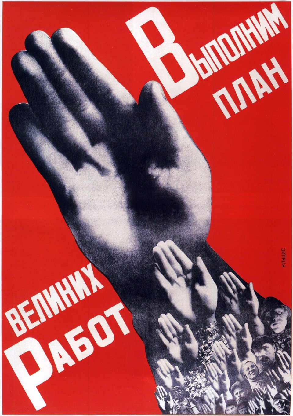 ![Г. Г. Клуцис. «Выполним план великих работ»]()