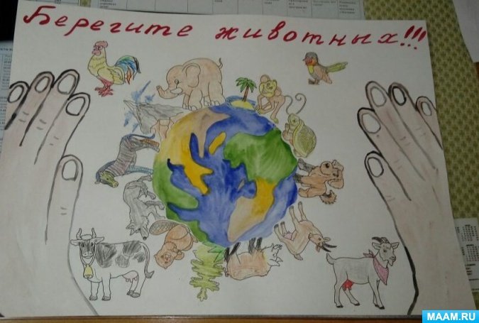 Берегите животных и сохраняйте окружающий мир! Наш плакат напоминает нам о важности защиты и заботы о животном мире. Каждое существо на нашей планете играет свою уникальную роль в экосистеме, и сохранение биологического разнообразия является ключевым фактором для обеспечения нашего благополучия. Мы должны осознать, что наши действия могут иметь серьезные последствия для животных и их среды обитания. Будьте ответственными и активно принимайте участие в сохранении природы. Вместе мы можем создать лучшее будущее для всех живых существ на Земле.