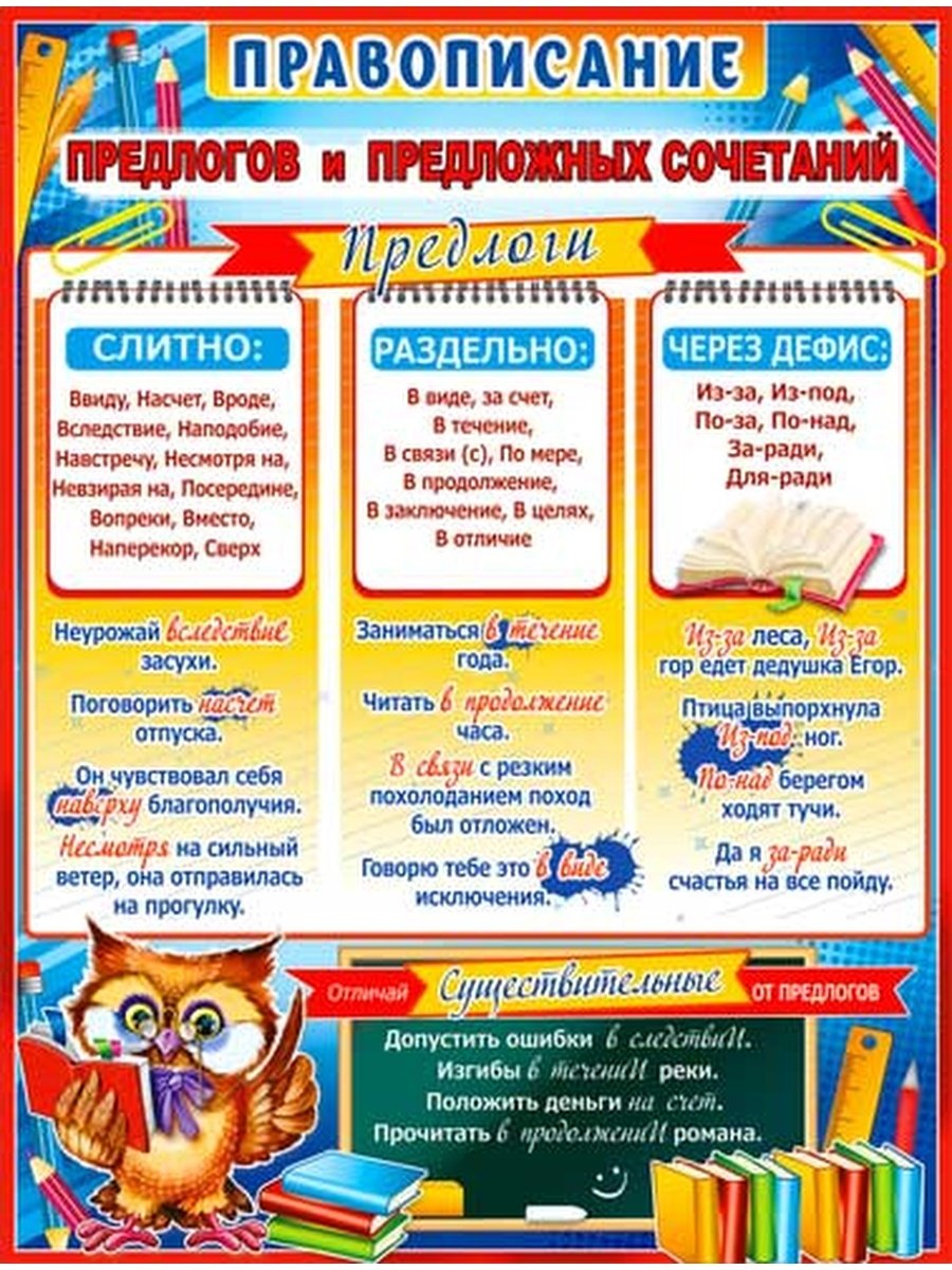 Предлоги - это часть речи, которая имеет огромное значение при построении предложений и связывании слов в тексте. Они помогают нам указать место, время, обстоятельства или отношение между различными элементами. Плакат на тему предлоги может быть очень полезным инструментом для изучения и запоминания основных предлогов и их использования в контексте. На плакате можно представить примеры предлогов с соответствующими иллюстрациями, чтобы визуально запомнить их значения. Такой плакат будет отличным помощником для школьников и всех, кто изучает или хочет освежить свои знания предлогов.