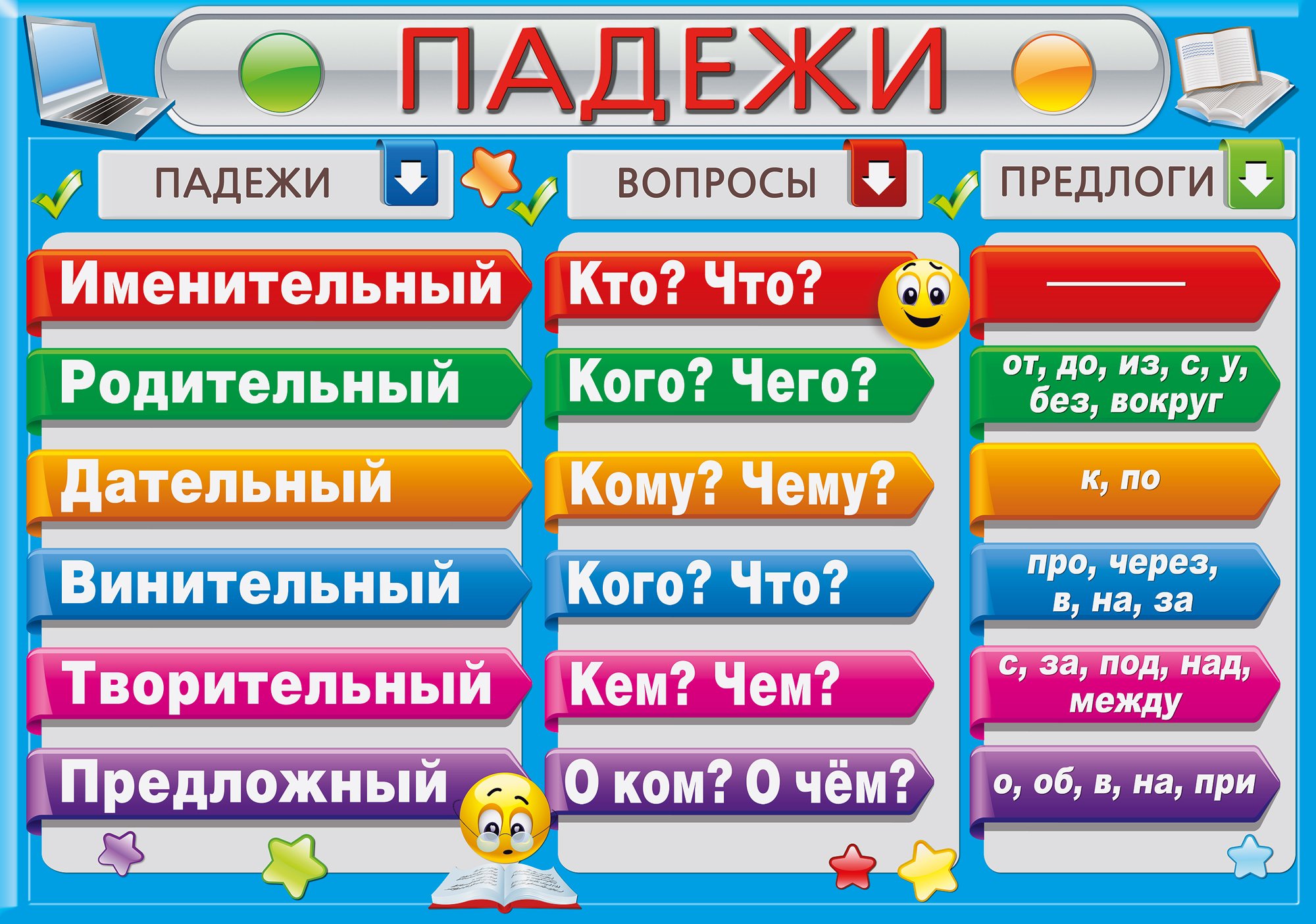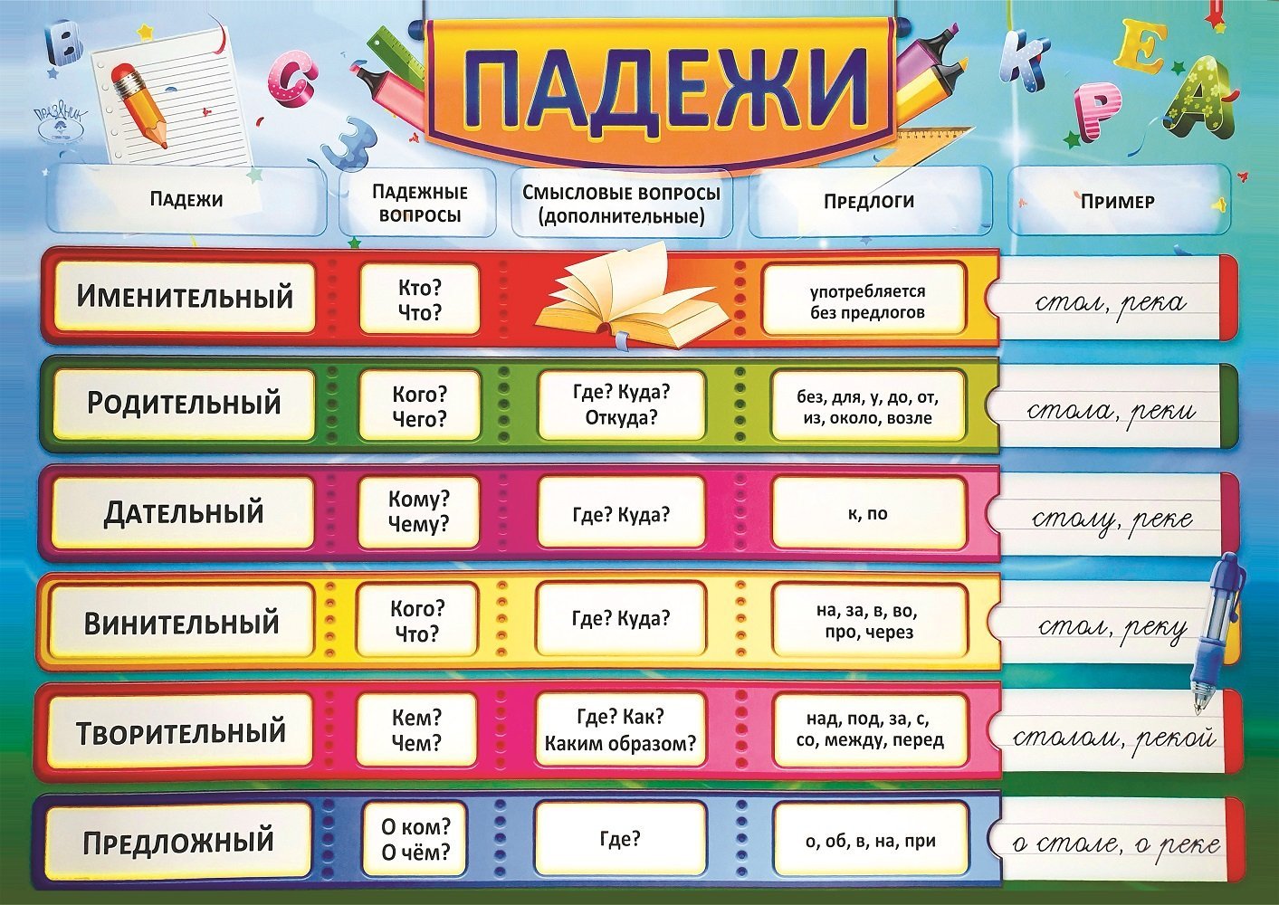 ![Падежи русского языка таблица с вопросами и предлогами]()