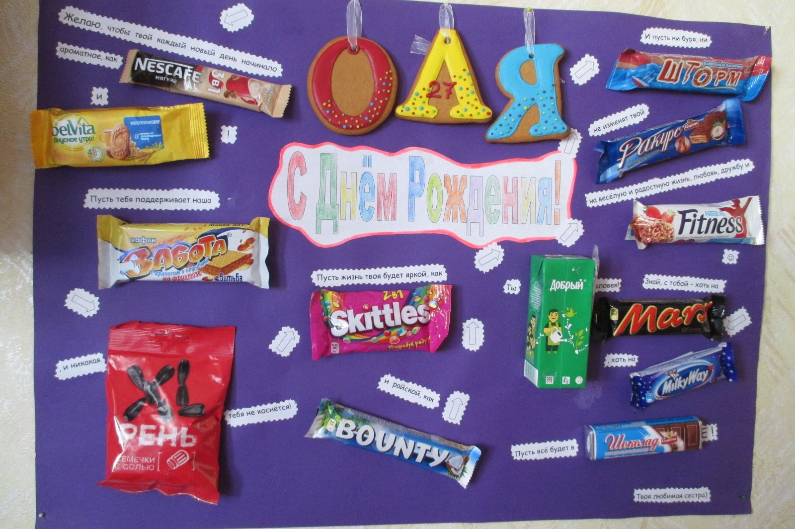 Поздравительный плакат со сладостями