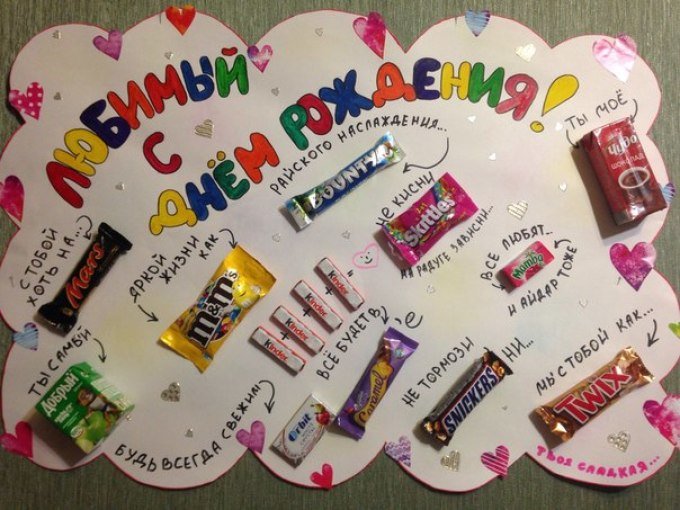 ![Плакат с днём рождения мужу и папе шоколадками]()