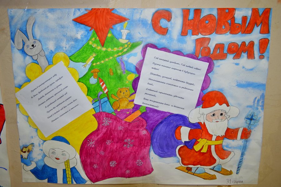 Плакат на новый год в школу