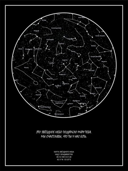 Плакат "Звездное небо в определенный день" - это удивительный способ погрузиться в мир космоса и насладиться его великолепием прямо у себя дома. Независимо от того, являетесь ли вы любителем астрономии или просто цените красоту звездного неба, этот плакат поразит вас своими деталями и реалистичностью. Он позволяет вам узнать, как выглядело небо в конкретный день, показывая расположение звезд, планет и даже галактик. Будь то ваша дата рождения, особый праздник или просто интересный исторический день, этот плакат станет отличным подарком для себя или близкого человека. Возможность увидеть, как меняется ночное небо в течение времени, создает прекрасный повод для вдохновения, размышлений и уникального переживания момента. Разместите этот плакат на своей стене и отправьтесь в захватывающее путешествие по звездам и галактикам, не выходя из дома.