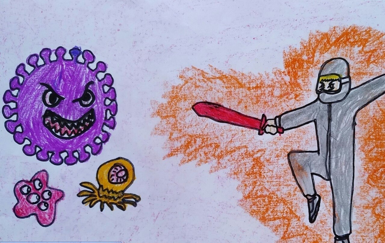 ![Рисунки на тему борьба с коронавирусом глазами детей]()