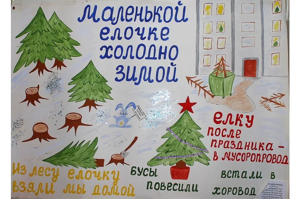 ![Плакат на тему не рубите елки]()