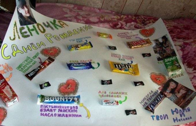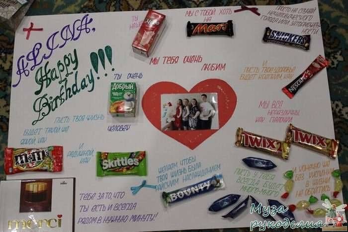 ![Плакат со сладостями на день рождения брату от сестры (49 фото)]()