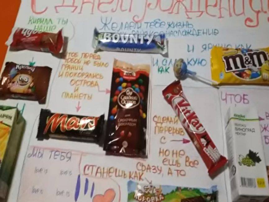 Хотите порадовать своего любимого мужчину на его день рождения? Тогда плакат с шоколадками и оригинальными надписями будет прекрасным подарком! Этот яркий и стильный аксессуар не только украсит праздничное пространство, но и станет приятным дополнением к его любимым лакомствам. На плакате можно разместить поздравления или юмористические надписи, которые точно вызовут улыбку имениннику. Такой подарок позволит вашему дорогому человеку почувствовать вашу заботу и любовь!