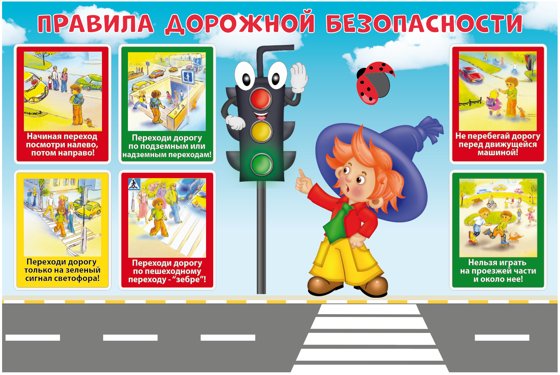 ![Плакат дорожного движения для детей]()