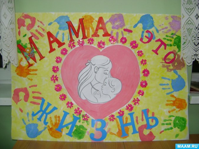 ![Плакат ко Дню матери в детском саду]()